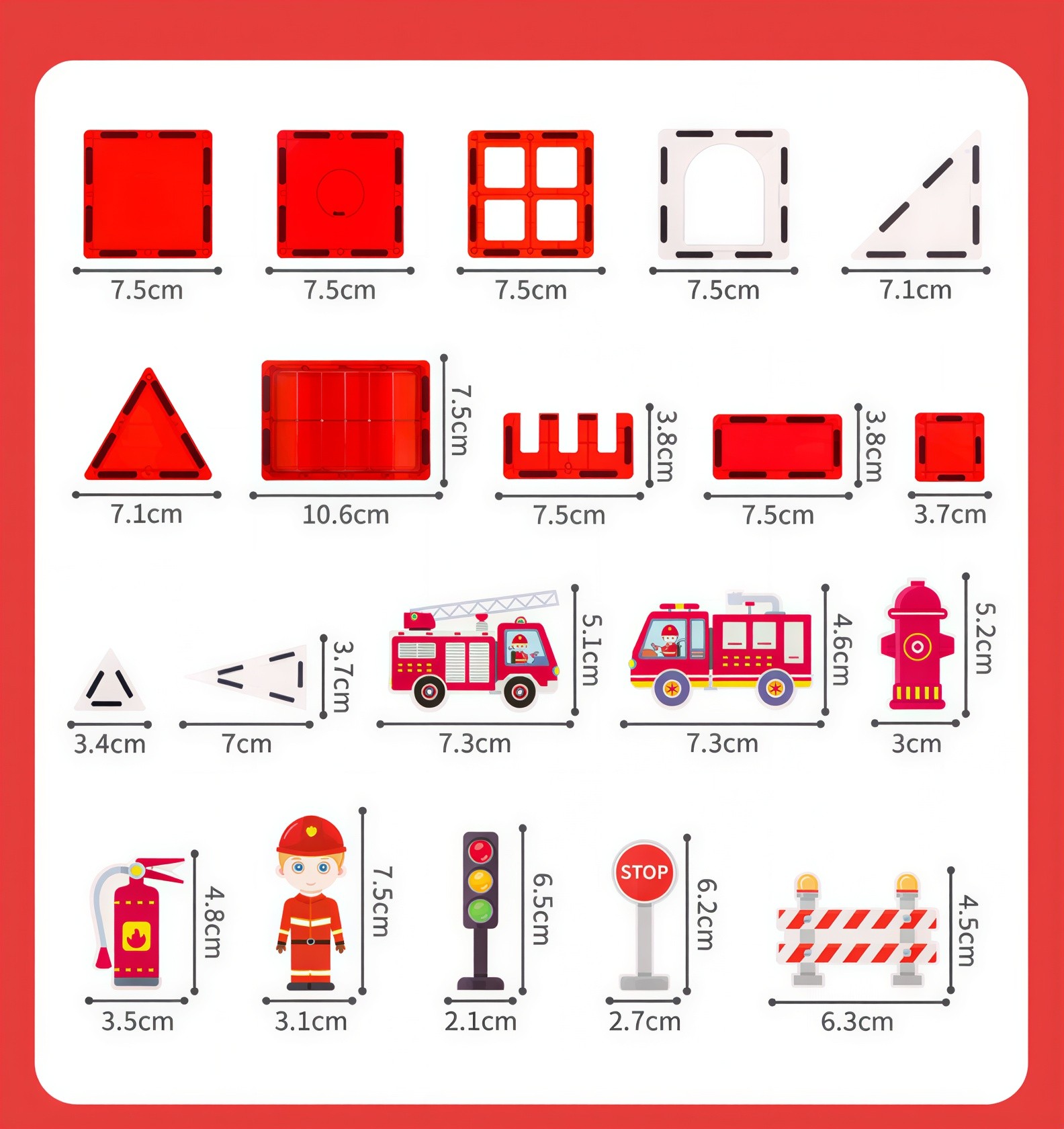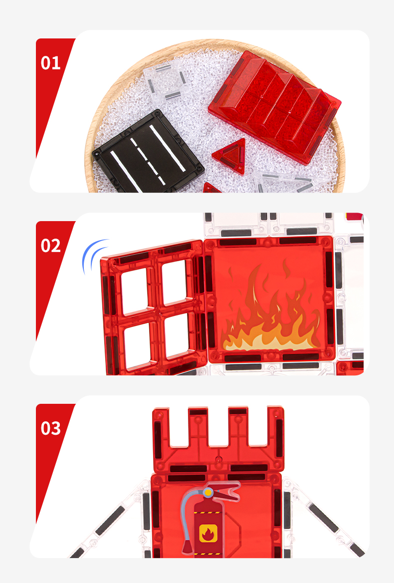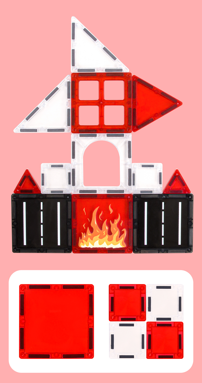 Τα κομμάτια συνδέονται εύκολα χάρη στους ισχυρούς μαγνήτες, επιτρέποντας την κατασκευή ποικίλων σχημάτων, σπιτιών, πύργων, κάστρων ή ακόμα και μοναδικών έργων τέχνης. Τα μαγνητικά τουβλάκια συνδυάζουν διασκέδαση, δημιουργία και αισθητική, αναπτύσσοντας λεπτή κινητικότητα, φαντασία και αίσθηση αρμονίας και ομορφιάς.