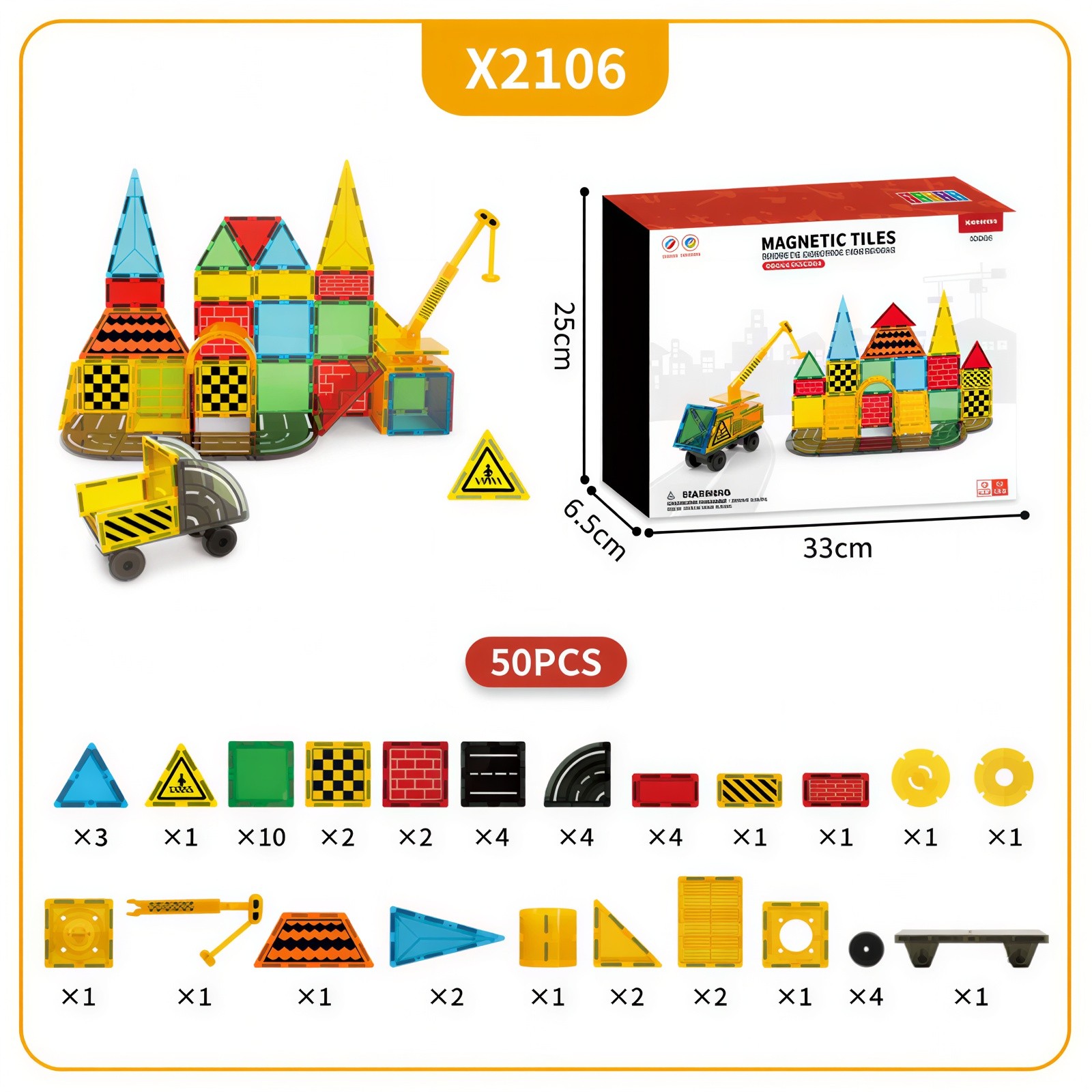 Τα κομμάτια συνδέονται εύκολα χάρη στους ισχυρούς μαγνήτες, επιτρέποντας την κατασκευή ποικίλων σχημάτων, σπιτιών, πύργων, κάστρων ή ακόμα και μοναδικών έργων τέχνης. Τα μαγνητικά τουβλάκια συνδυάζουν διασκέδαση, δημιουργία και αισθητική, αναπτύσσοντας λεπτή κινητικότητα, φαντασία και αίσθηση αρμονίας και ομορφιάς.