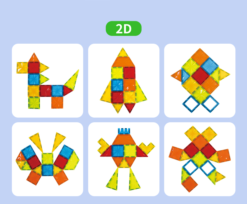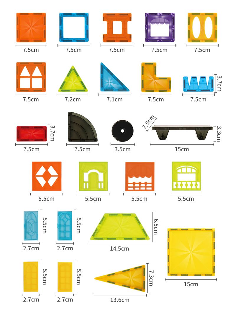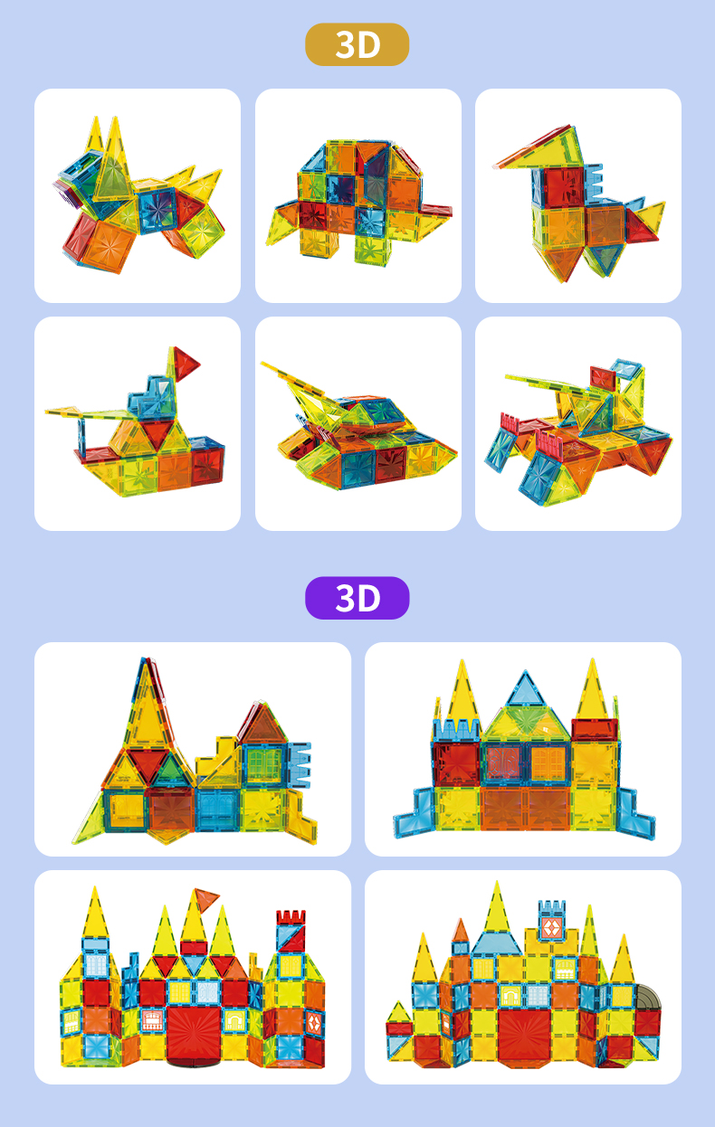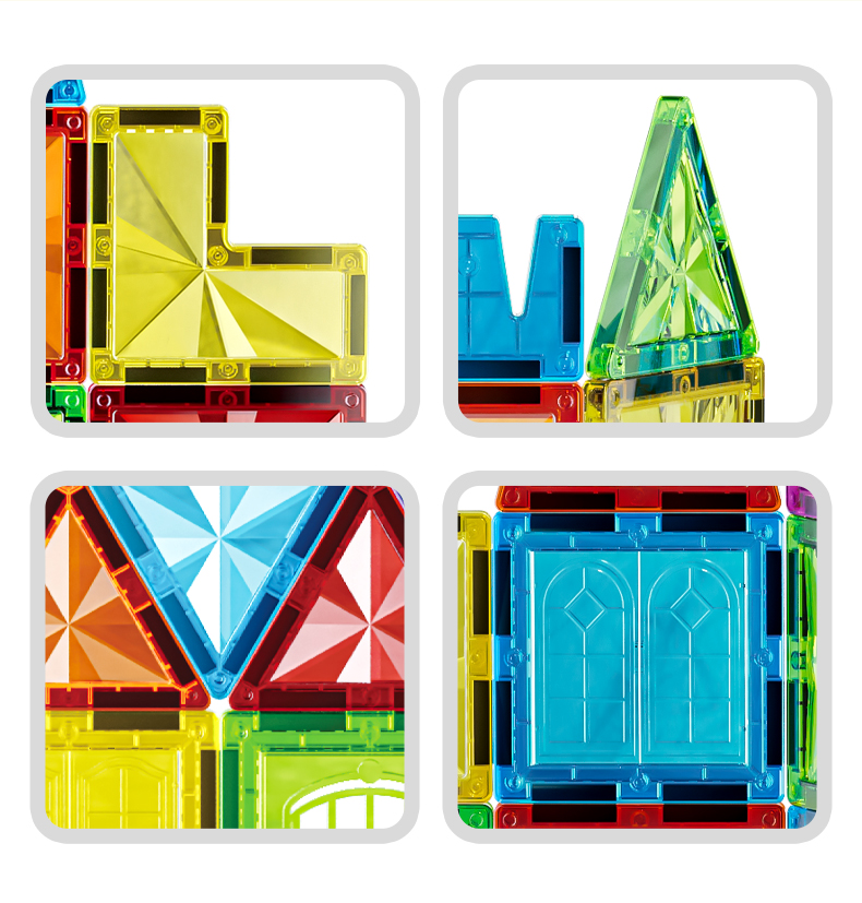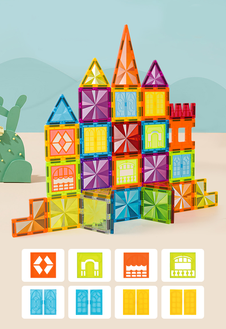 Τα κομμάτια συνδέονται εύκολα χάρη στους ισχυρούς μαγνήτες, επιτρέποντας την κατασκευή ποικίλων σχημάτων, σπιτιών, πύργων, κάστρων ή ακόμα και μοναδικών έργων τέχνης. Τα μαγνητικά τουβλάκια συνδυάζουν διασκέδαση, δημιουργία και αισθητική, αναπτύσσοντας λεπτή κινητικότητα, φαντασία και αίσθηση αρμονίας και ομορφιάς.